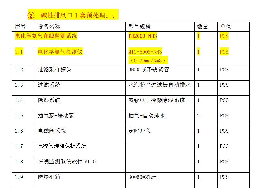 在線監(jiān)測(cè)預(yù)處理系統(tǒng) 1套(內(nèi)含對(duì)應(yīng)氣體檢測(cè)儀1臺(tái))