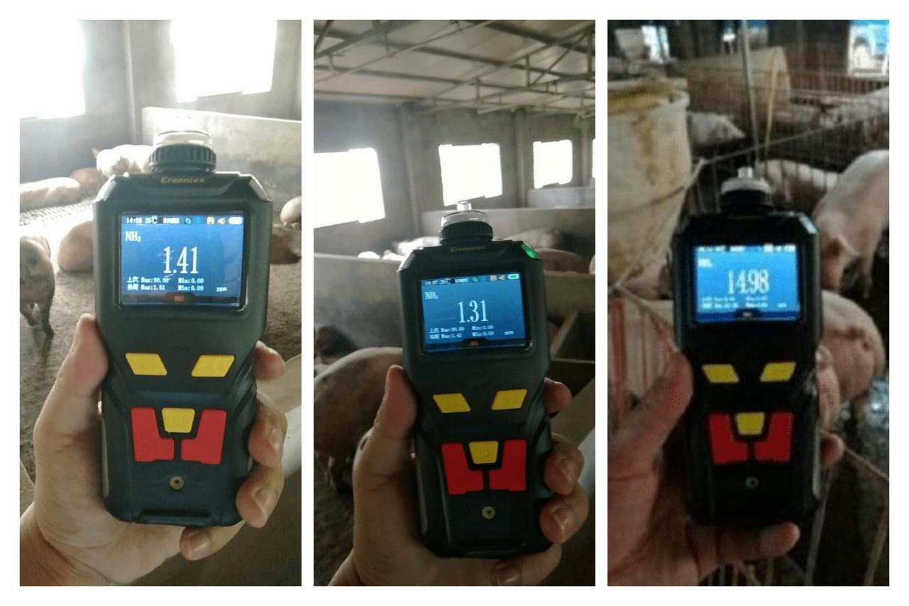 說明:通過采用泵吸式產品配合采樣探頭,可對養殖場所各個地區和角落進行巡查,了解有害氣體濃度范圍,以及現場溫濕度情況,根據檢測后的值作出相應措施,如通風,及時清理排泄物等。